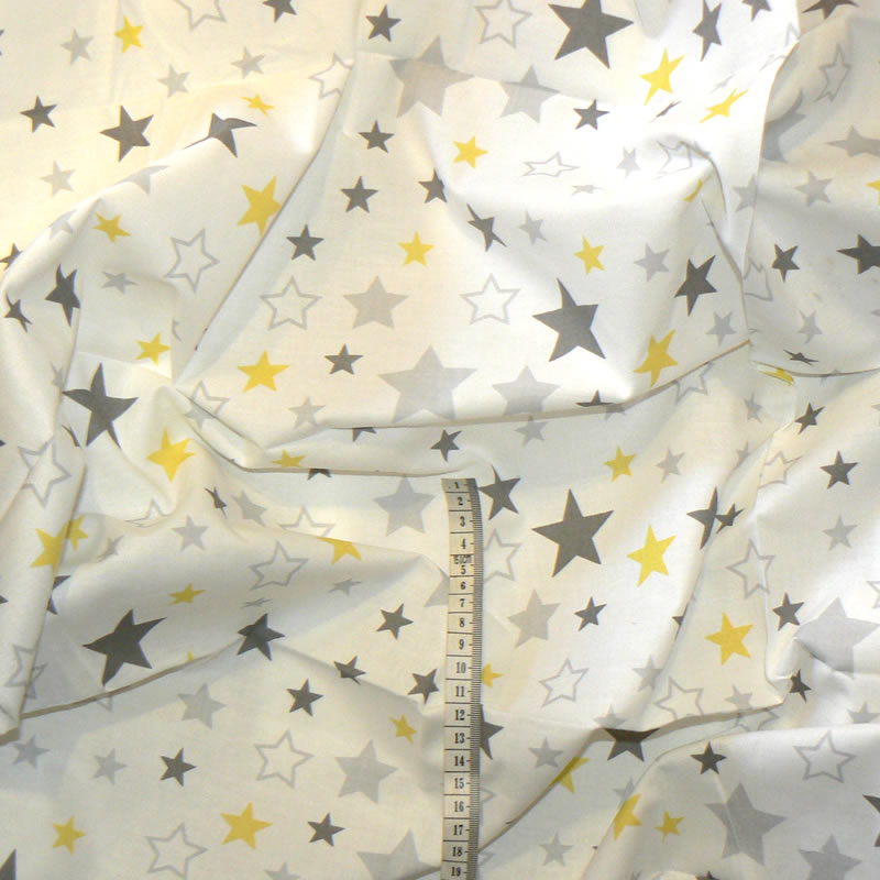 0689 Bavlněná látka plátno 40x120cm hvětdy žlutošedá na bílé zbytek na patchworkSkladem 8 ks32 Kč/ ks