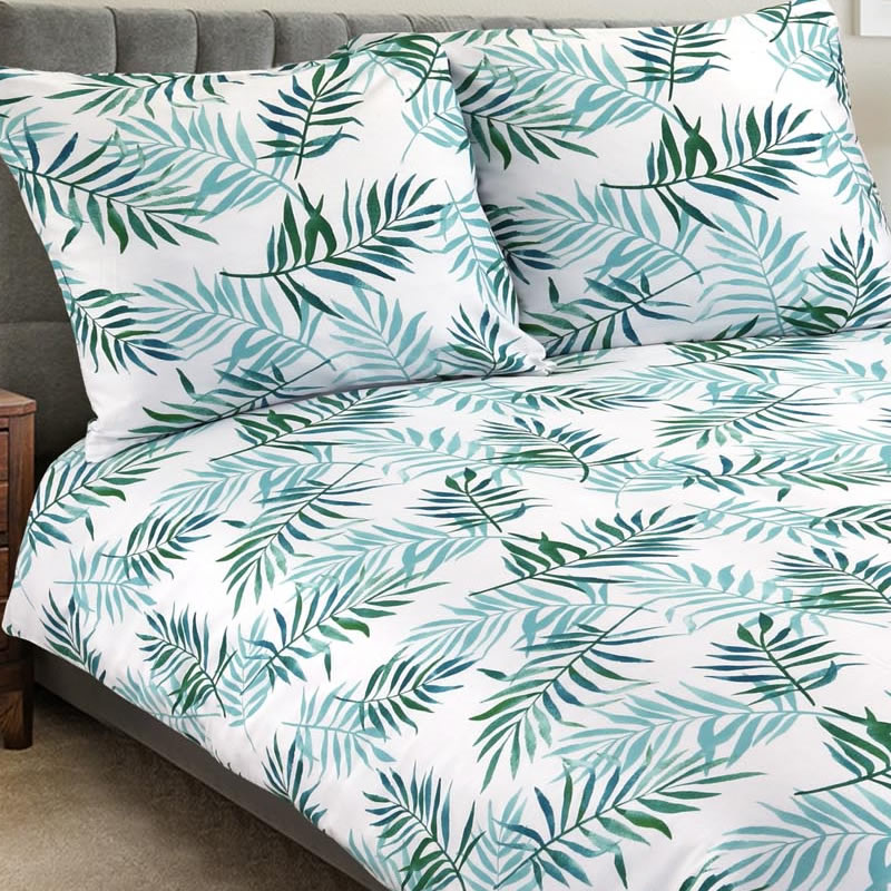 7B52 Bavlněný satén látka prostřih motýl 17x33cm listy zelenomodrá na bílé zbytek na patchwork