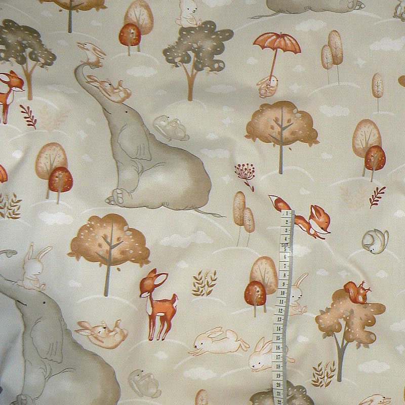 7C134 Bavlněná látka 76x26cm sloni králíčci béžová zbytek na patchwork