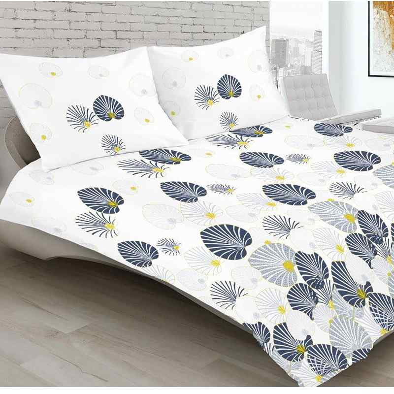 7C60 Bavlněný satén látka 78x34cm modré mušle na bílé (foto viz polštář) zbytek na patchwork