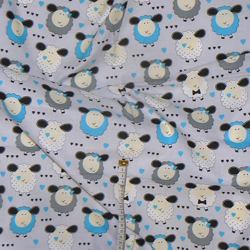 7F122 Bavlněná látka plátno 74x70cm ovečky na šedé zbytek na patwchwork