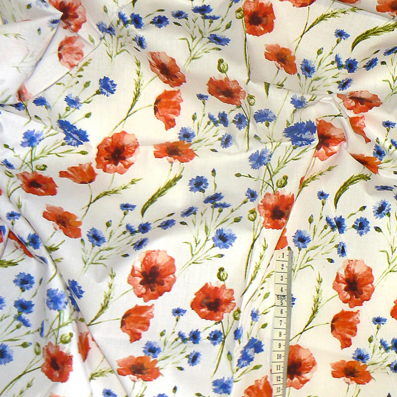 7F216 Bavlněná látka plátno 25x160cm máky chrpy na bíléSkladem 1 ks29 Kč/ ks