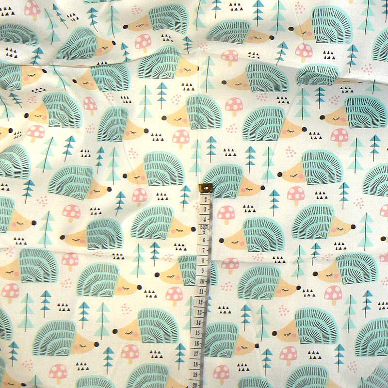 7F234 Bavlněná látka plátno 84x144cm zelení ježečci na perlové zbytek na patchworkSkladem 1 ks79 Kč/ ks